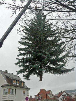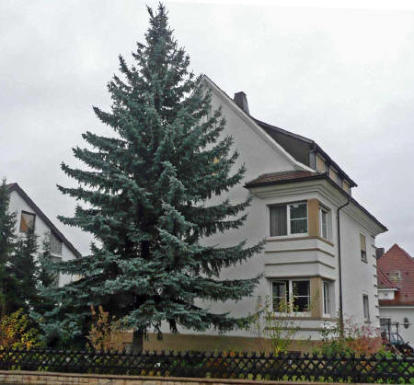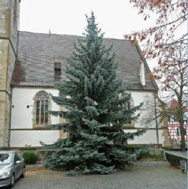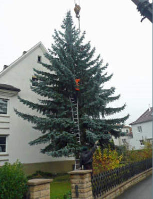 Sie hatte zwar keinen Namen aber sie gehörte doch zur Familie; nur mit der Zeit machte sie sich am Fundament des Hauses, Gartenmauer und Gehwegplattenzuschaffen.Bedrohlich neigte sie sich bei Sturm zum Haus, an dem sie dann auch schon mal an der Hauswand kratzte oder anklopfte. Nachdem ein Abschied nicht zu vermeiden war, stellten wir sie der Stadt Leonberg zur Verfügung um sie als Christbaum zu verwenden.