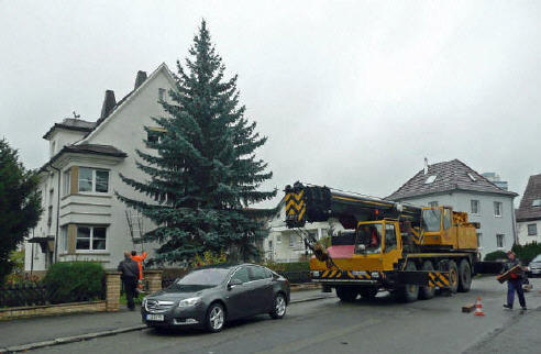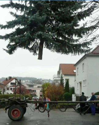 Abschied von unserer Blaufichte - oder: ein Baum fliegt gen Eltingen Mo.15.11.2010
