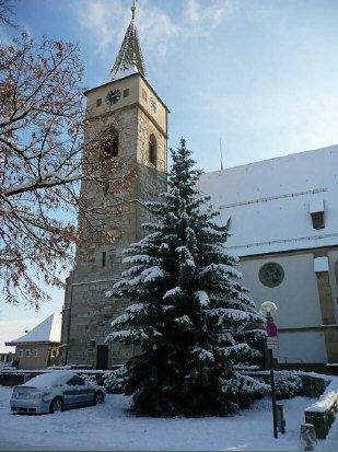 ... und das ist sie kaum 3 Stunden später auf dem Eltinger Kirchplatz, möge sie prachtvoll erstrahlen.