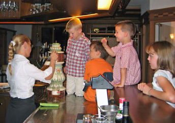 ... auch die Kinder waren prächtig unterhalten.Der schönste Platz ist immer auf der Theke. --- Kurze Unterweisung in der Kunst des Bierzapfens von der wahrscheinlich geduldigsten Hotelfachfrau Baden - Württembergs.
