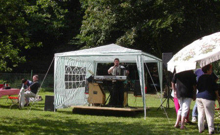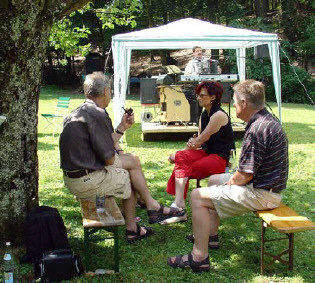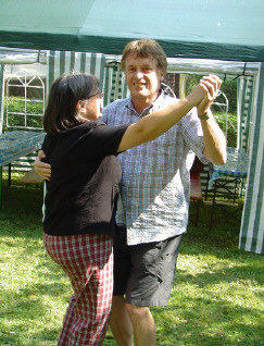 Natur pur!Bild oben: Eröffnungswalzer in Sandalen am " Steilhang ".Die Sonne war an diesem Tag ebenso emsig wie die Gastgeber, die im Vorfeld mit ganz viel Optimismus, Ideenreichtum und Euphorie ihr Gartengrundstück in ein kleines Festparadies verwandelten.Das oberste Gebot, die Gemütlichkeit regieren lassen um ganz zwanglos durch den Tag zu schaukelnBild unten: Am frühen Nachmittag gab es für alle, die Lust hatten eine kleine Wanderung.